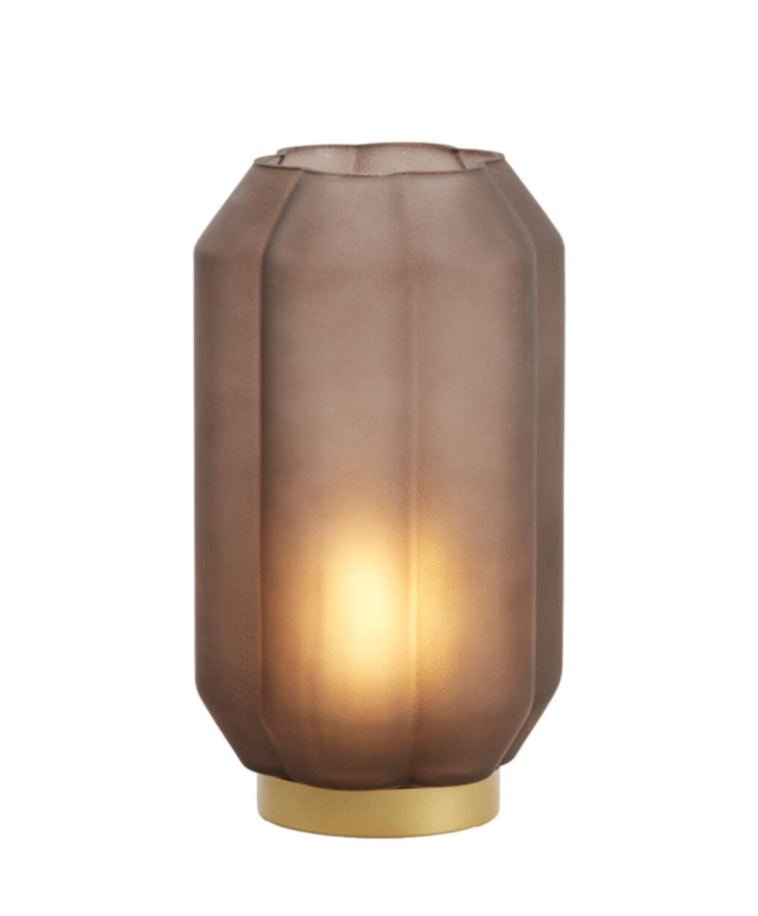 Med sin kompakta design i aprikos matt glas och guldtonade detaljer är Aurora både en snygg och praktisk ljuskälla som kan placeras var som helst – på sidobordet, i bokhyllan eller till och med på balkongen.