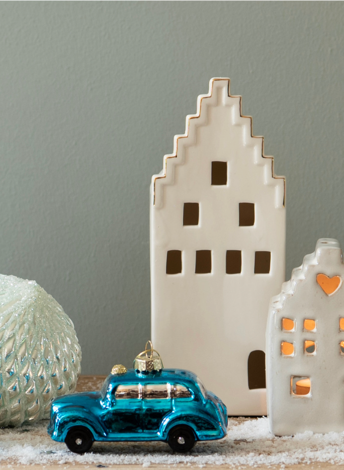 Här har vi det finaste lilla vita porslinshuset med inbyggd LED-lampa – en perfekt detalj för att skapa värme och stämning i Ditt hem. Placera det i fönstret, på bordet eller som en del av Din juldekoration.