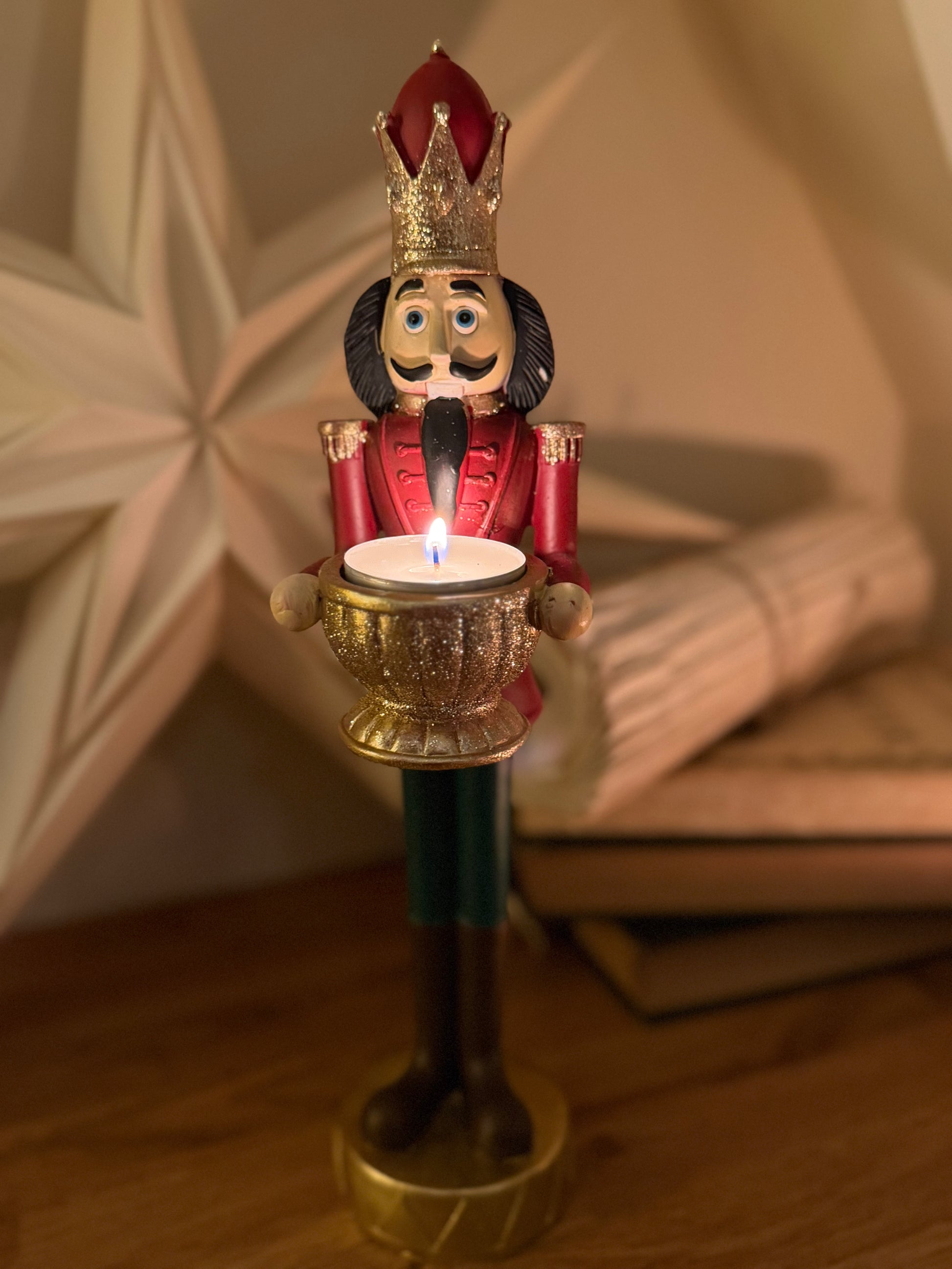 Denna nötknäckare är både dekorativ men också en ljusstake/-hållare för värmeljus.