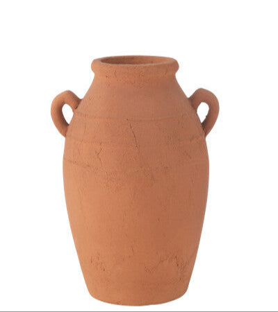 Den varma, terrakottafärgade ytan ger en inbjudande glöd som förhöjer vilken inredning som helst, och den distinkta amphoraformen tillför både tradition och stil. Perfekt för att visa upp dina vackraste blommor eller som en självständig skulptural detalj.
